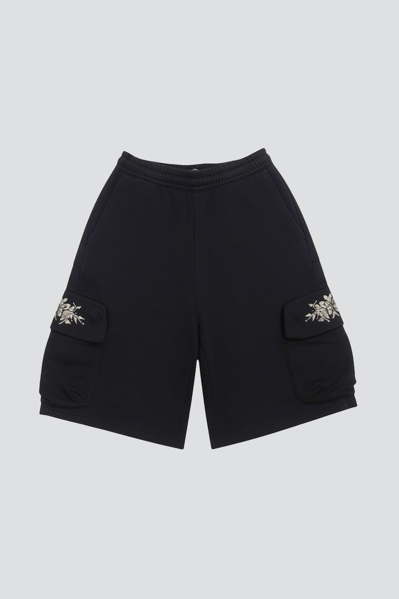 Black Deadstock Fleece Rhinestone Cargo Sweatshort