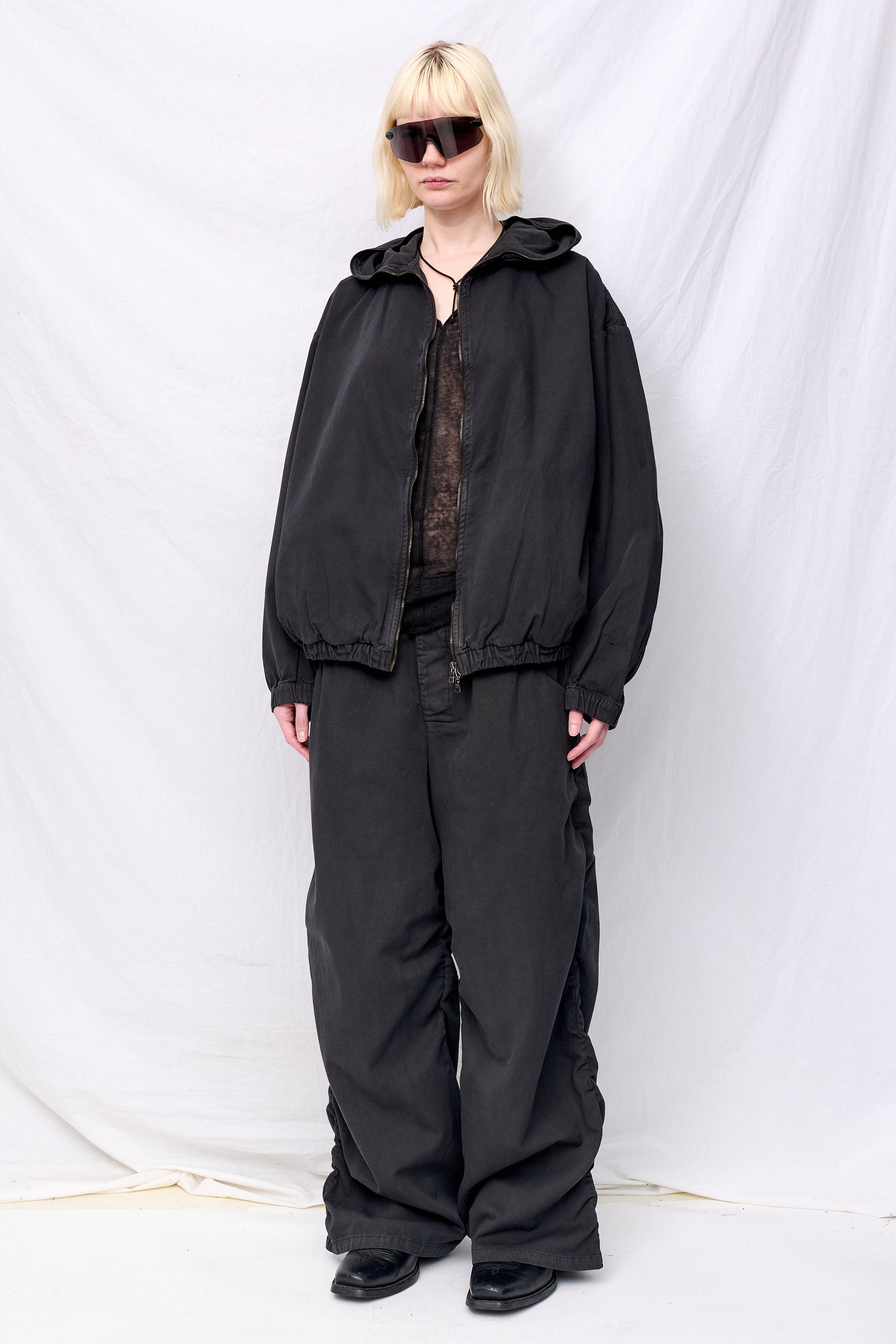 No. 216 Black Poplin Hooded Zipper Jacket
