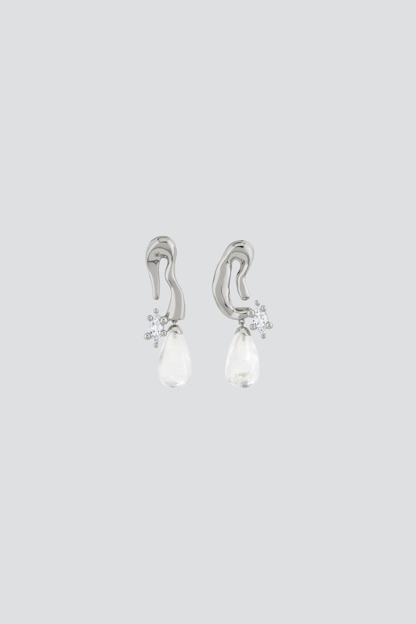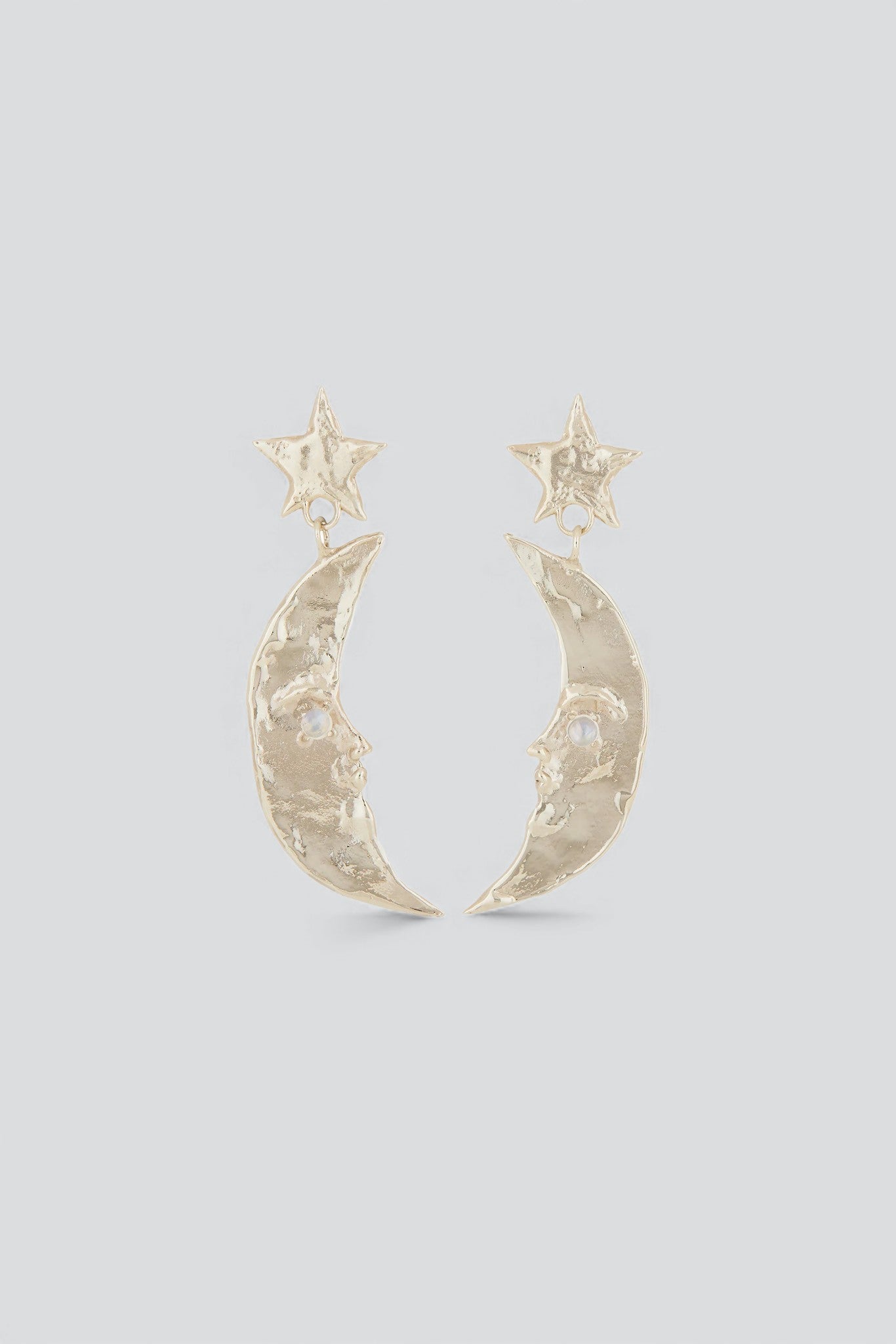 White Bronze/Glass Moonstone Moon Earrings