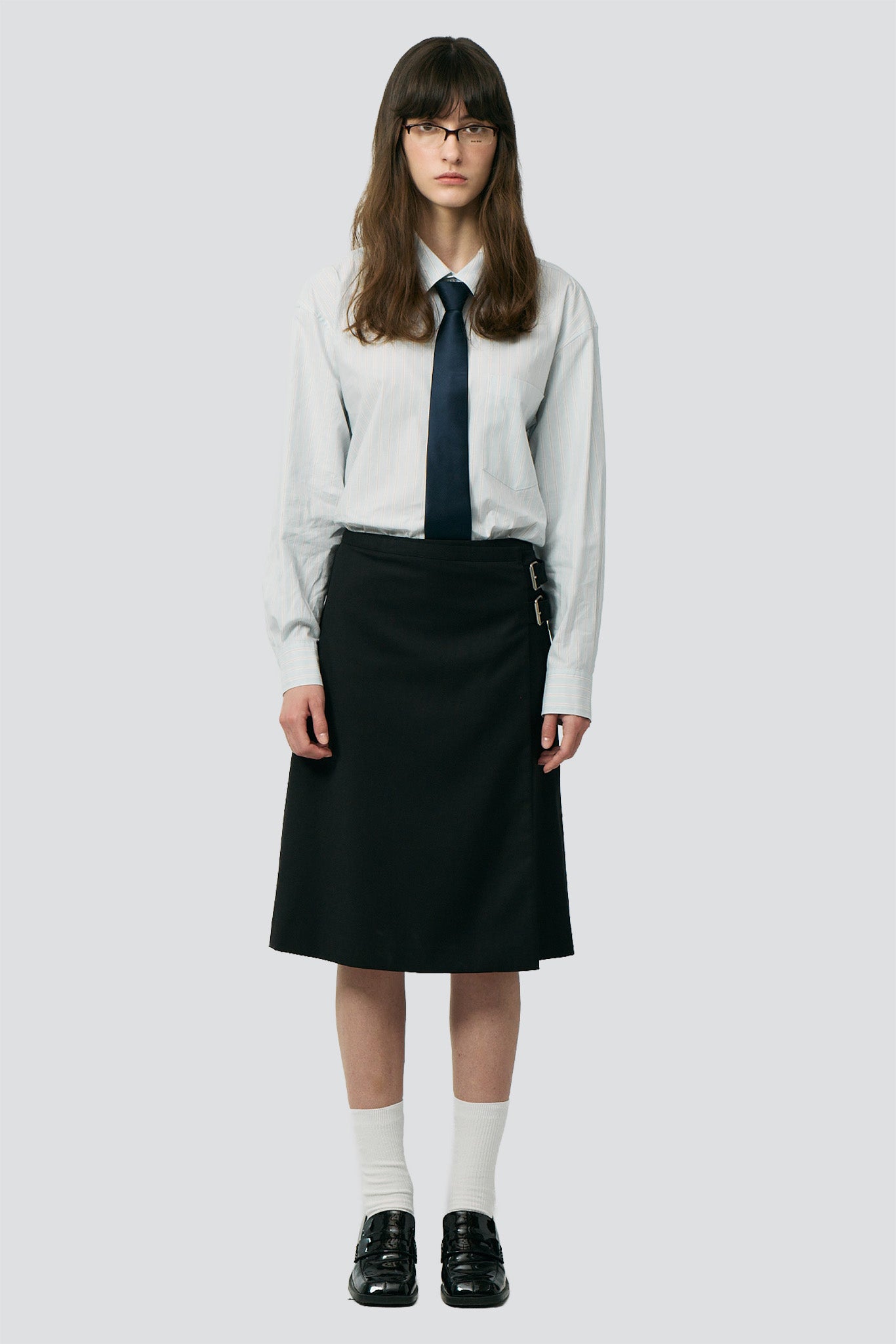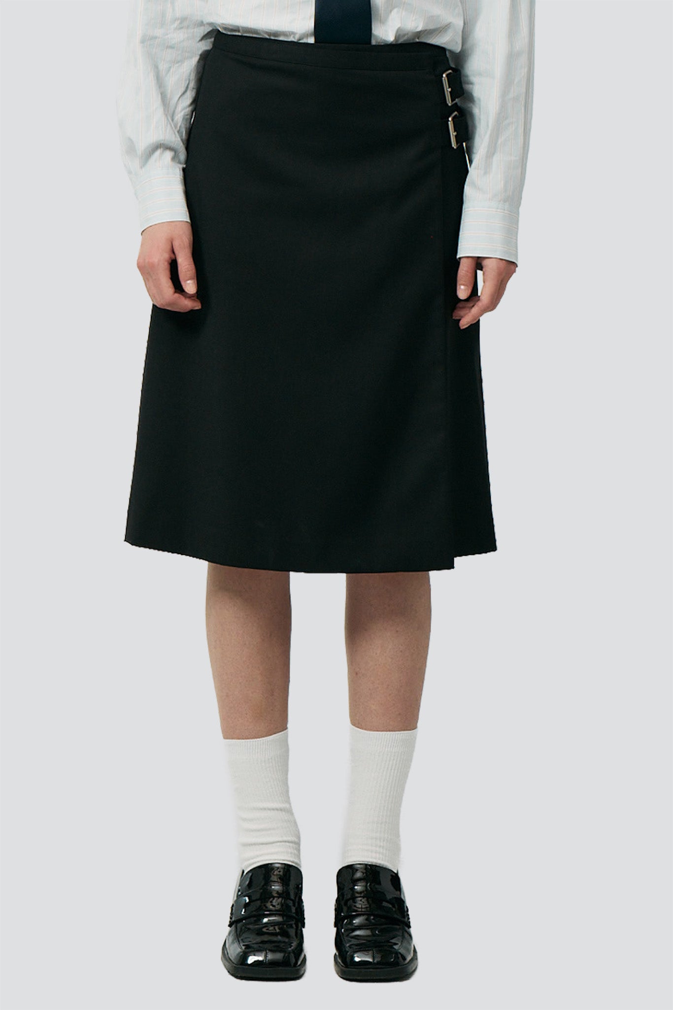 Black Pleats Midi Skirt