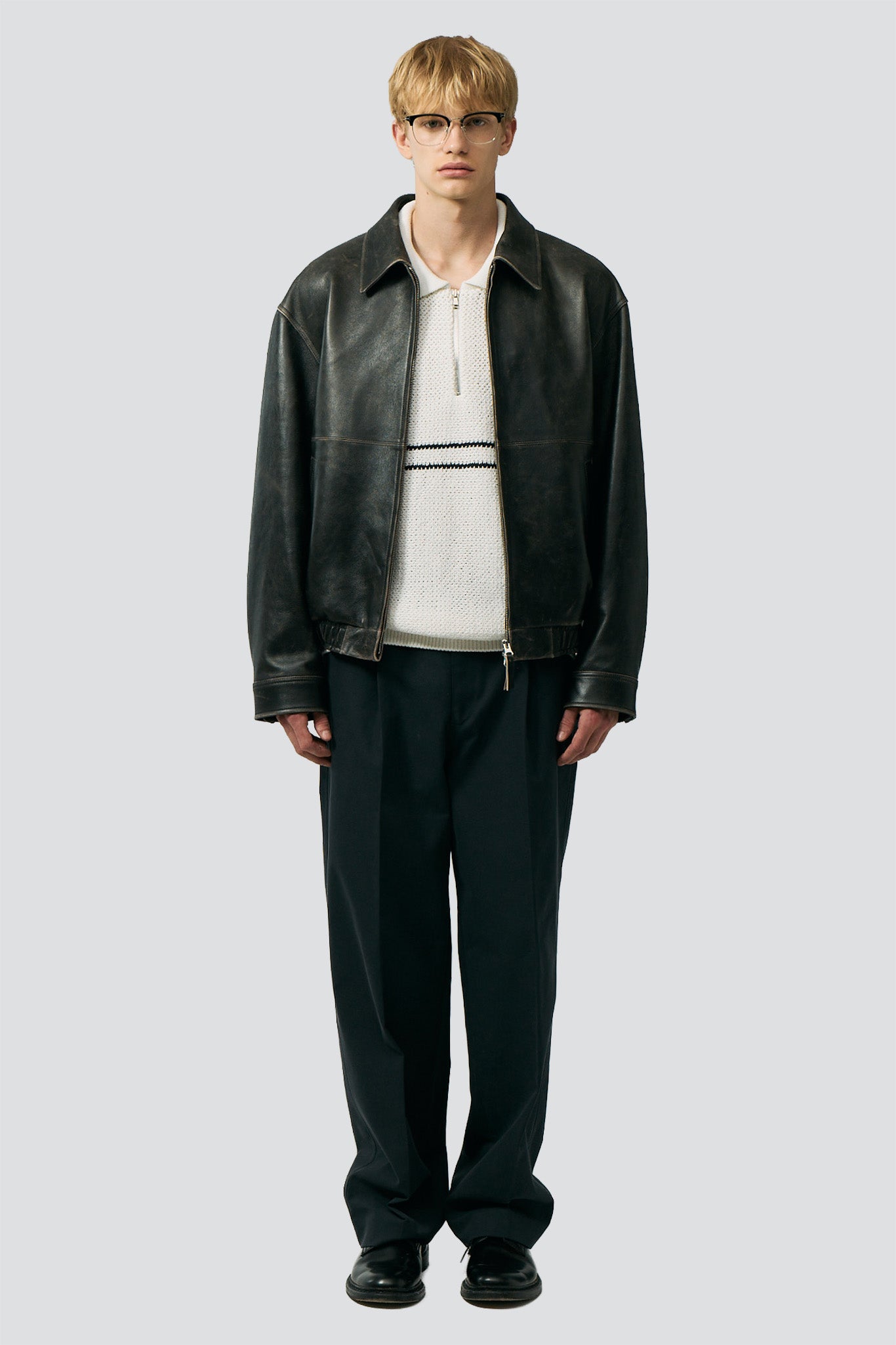 Black Leather AJ1452 Shoe