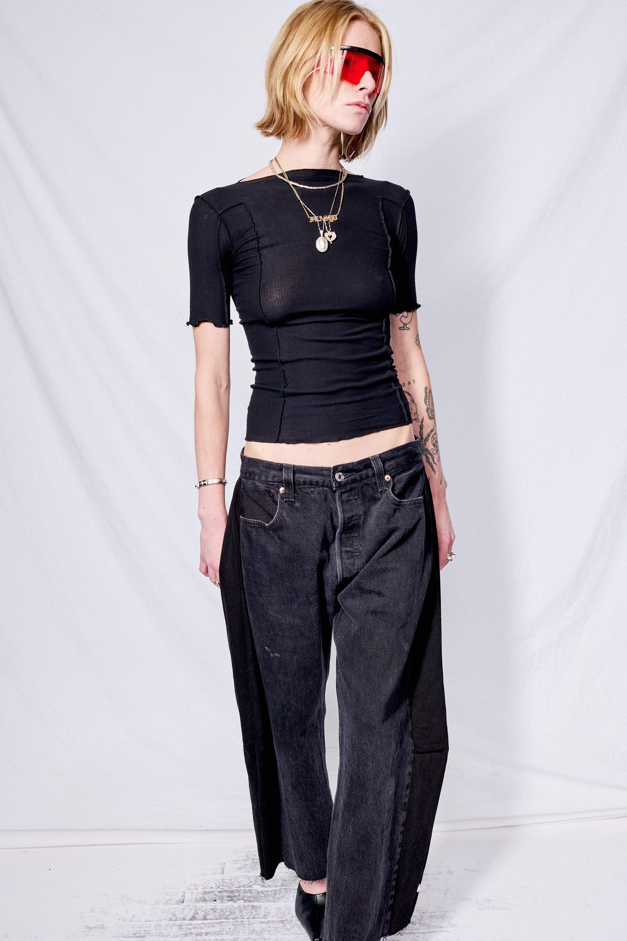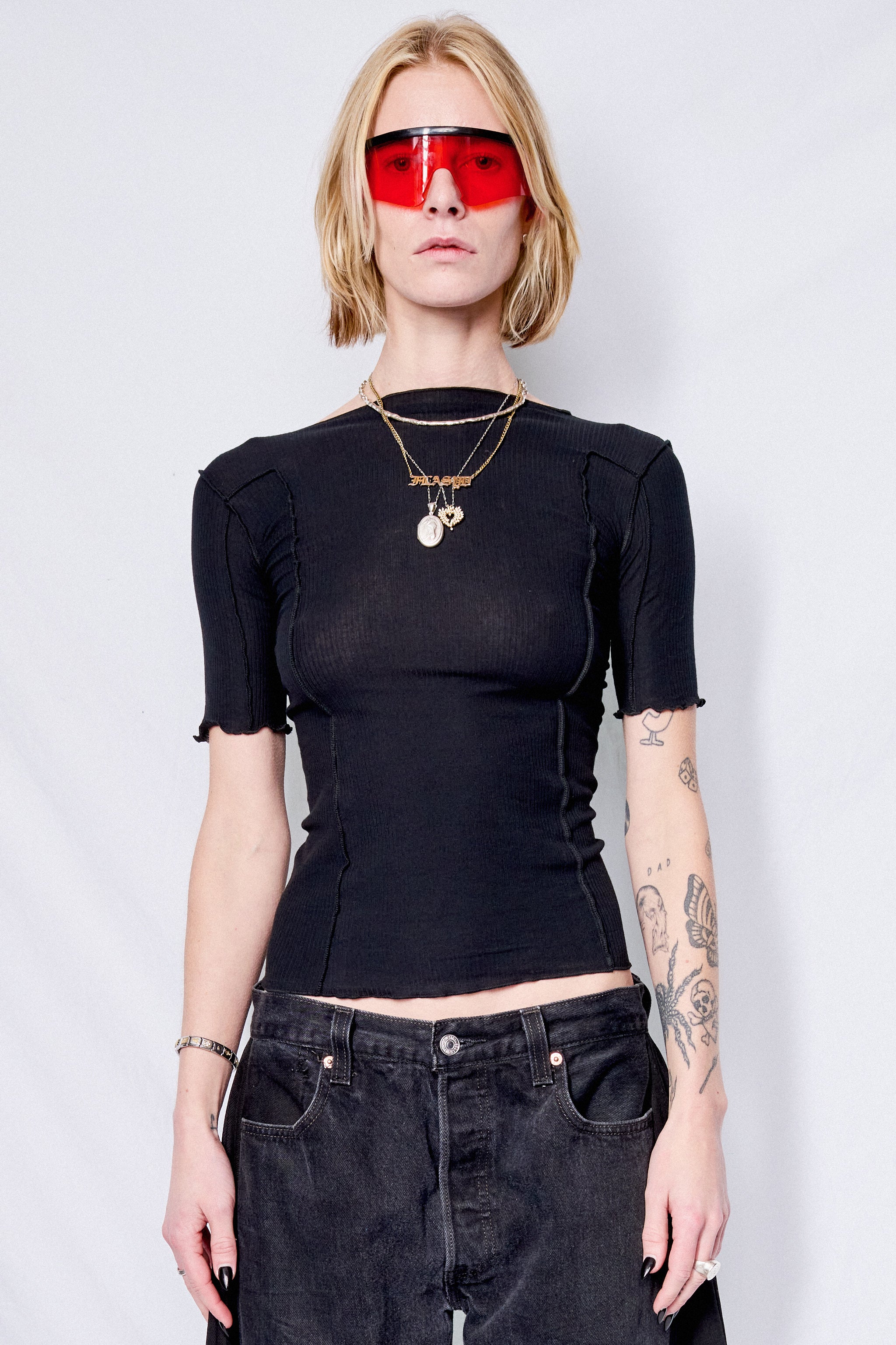 Black Omato 3/4 Rib T-Shirt