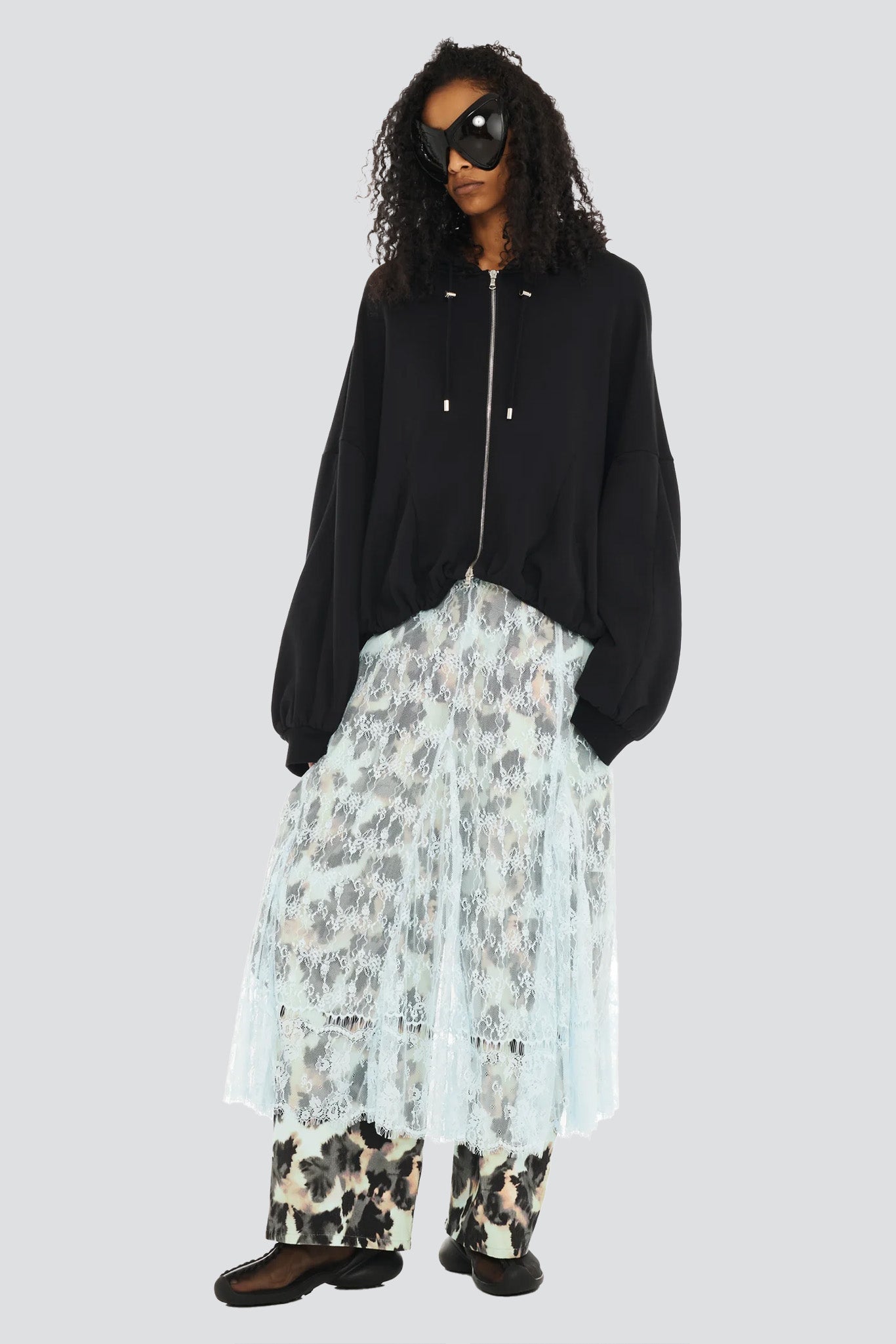 Black Deadstock Fleece Gathered Zip Up Hoodie