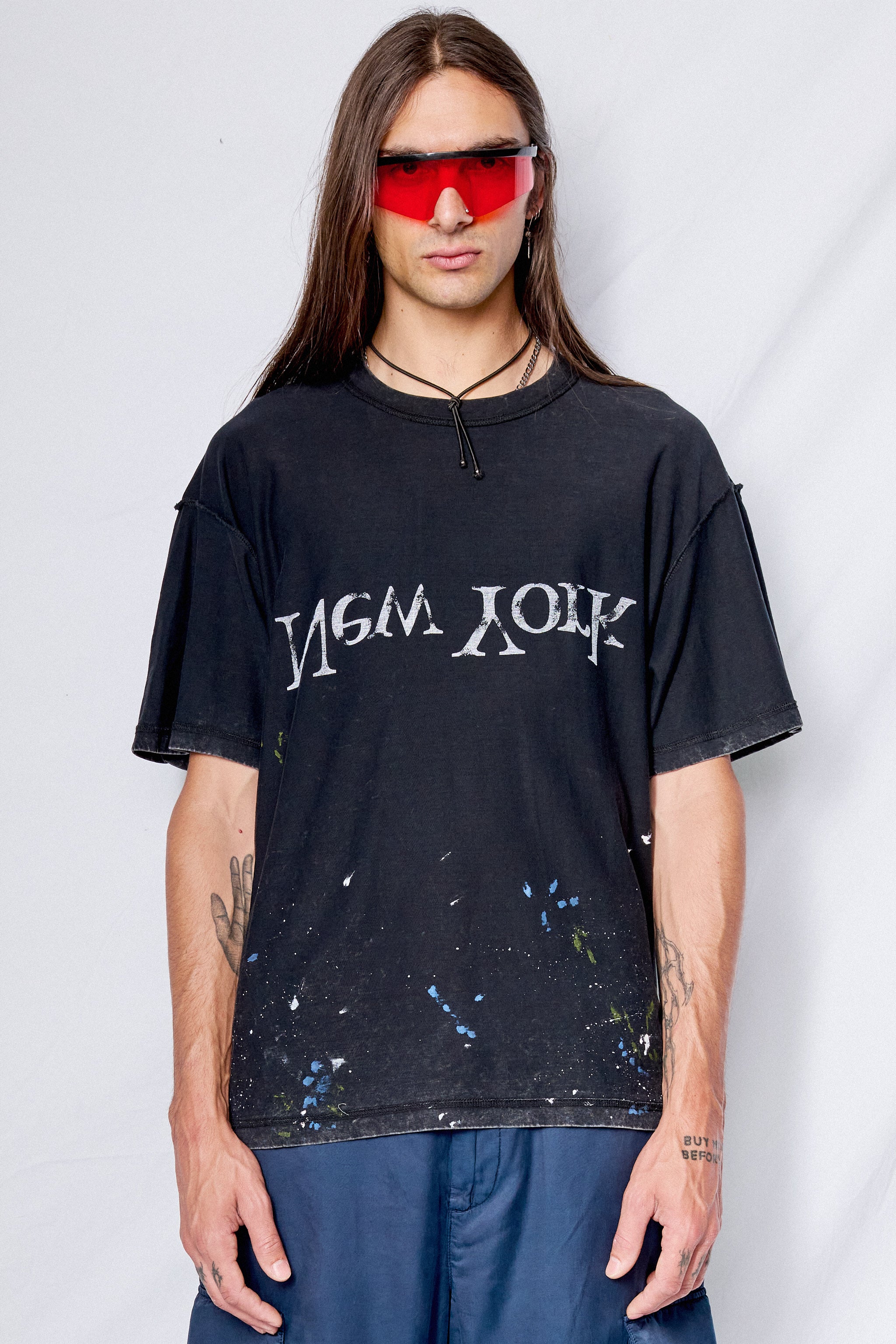 Black Painted New York Logo T-Shirt