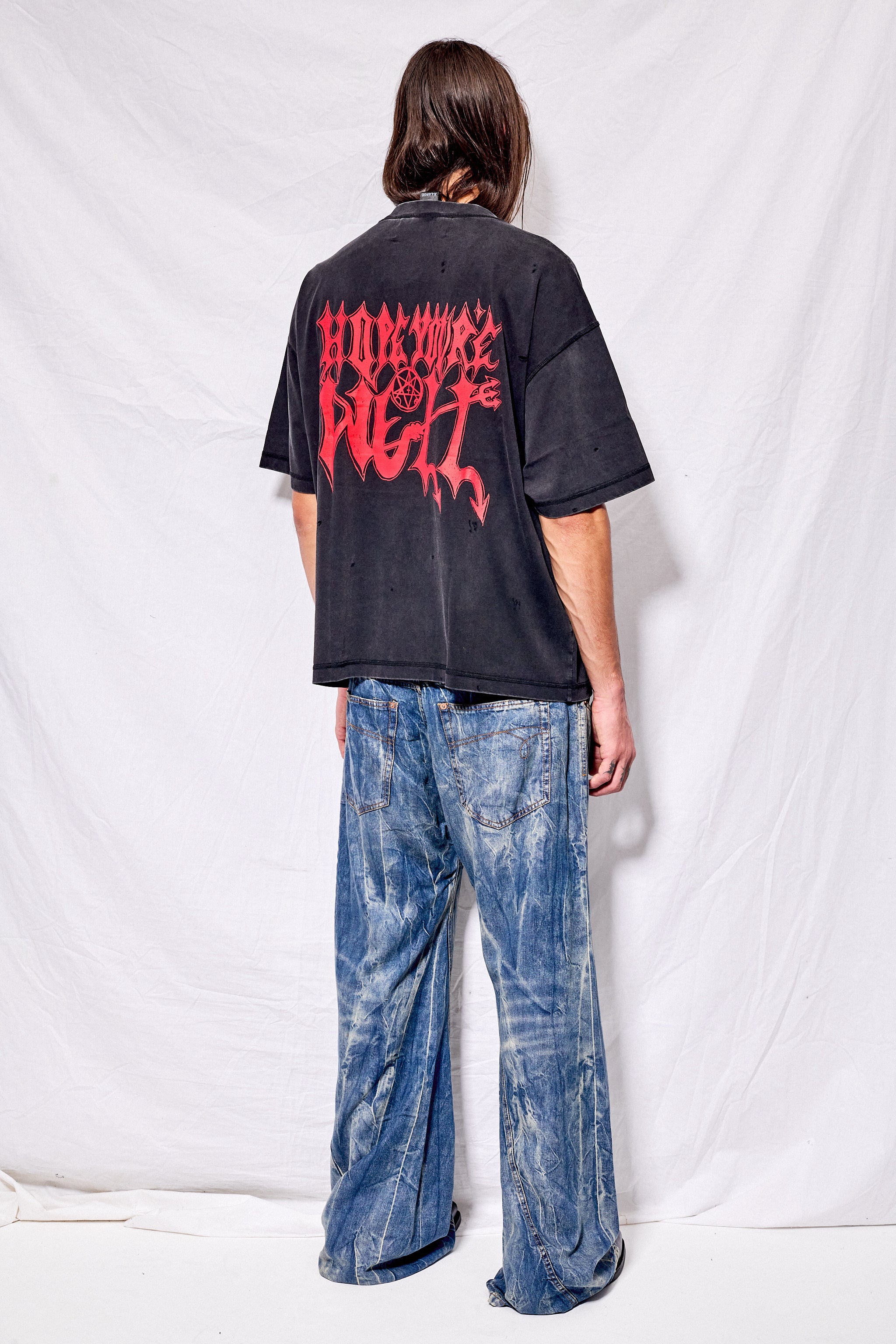 Washed Black Raw Edge Sweatshirt Tee