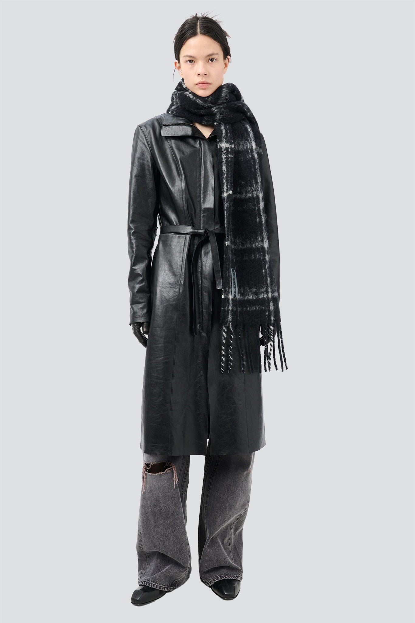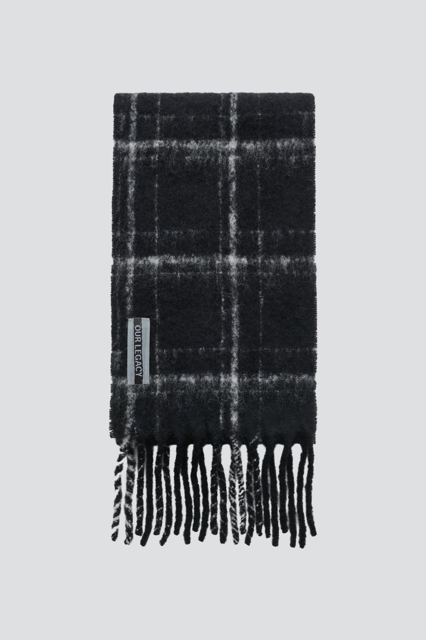 Black Fuzzy Alpaca Check Estate Scarf